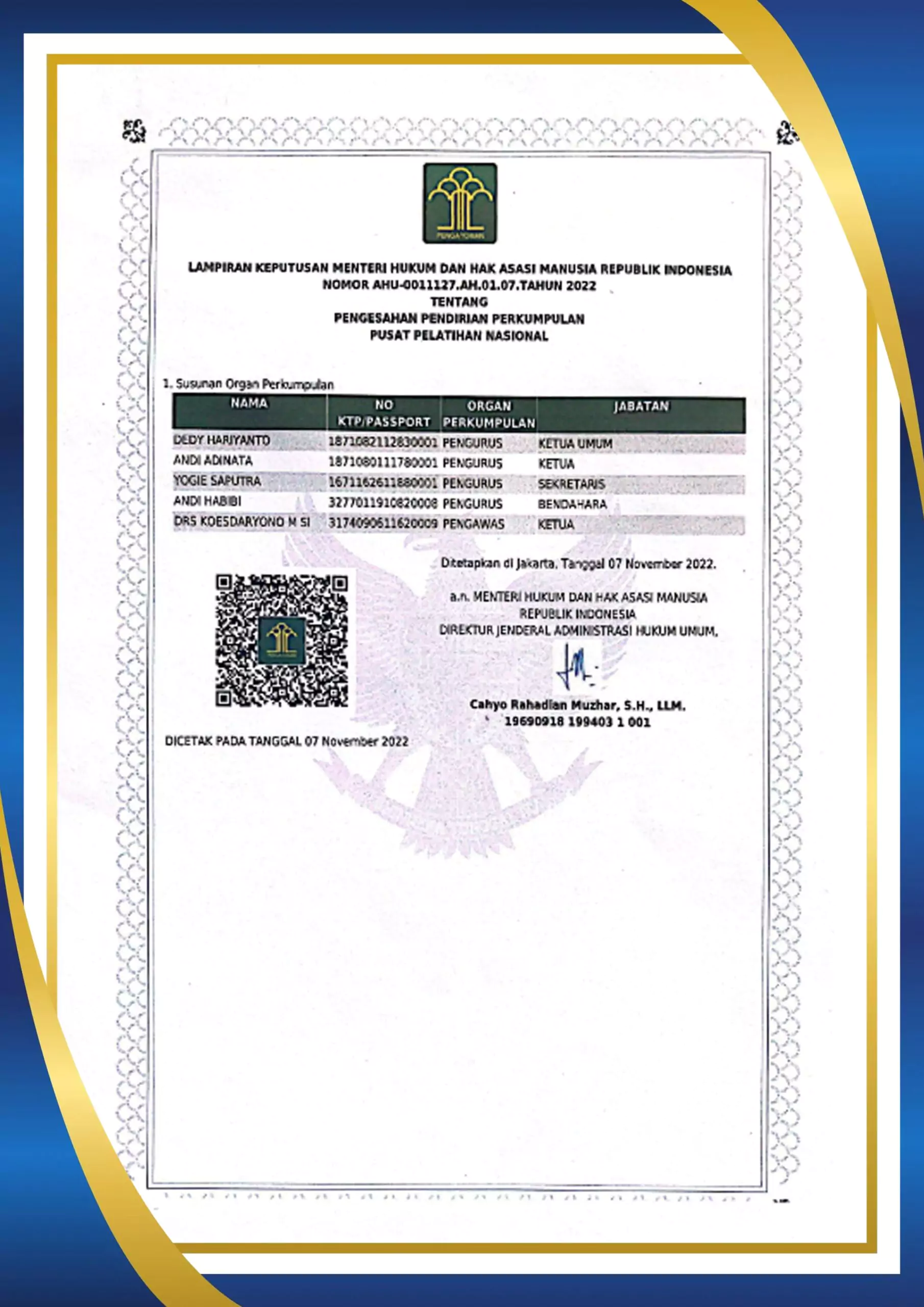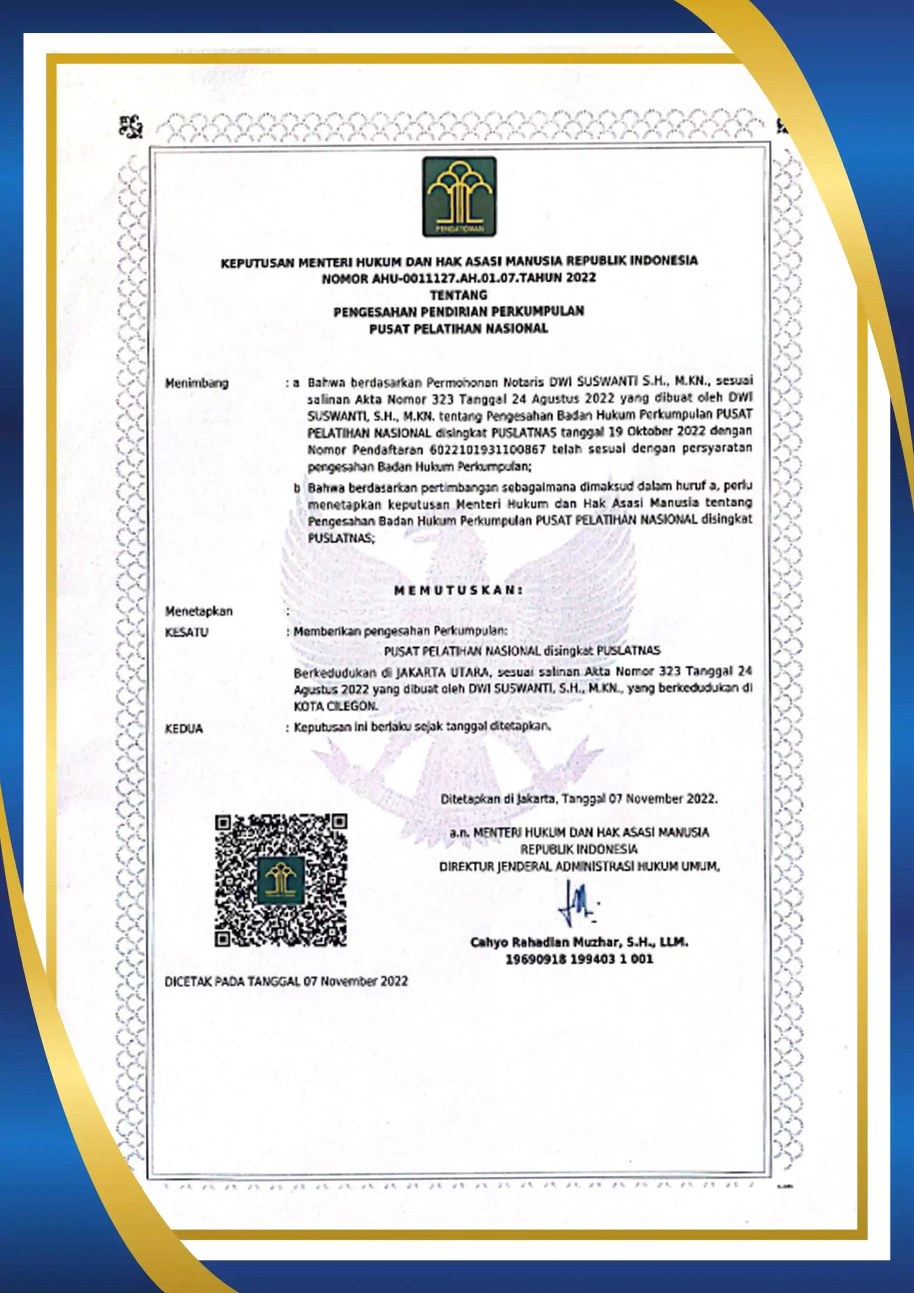- Sertifikat (Diberikan Sertifikat Pelatihan dari Puslatnas. Untuk pelatihan Online, Sertifikat dikirim ke alamat peserta)